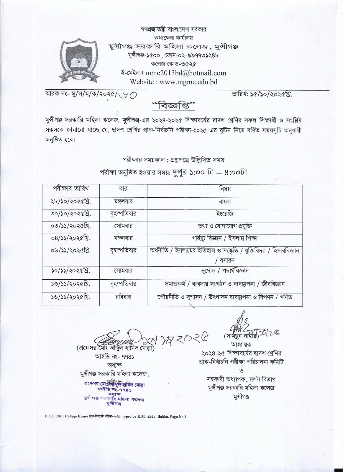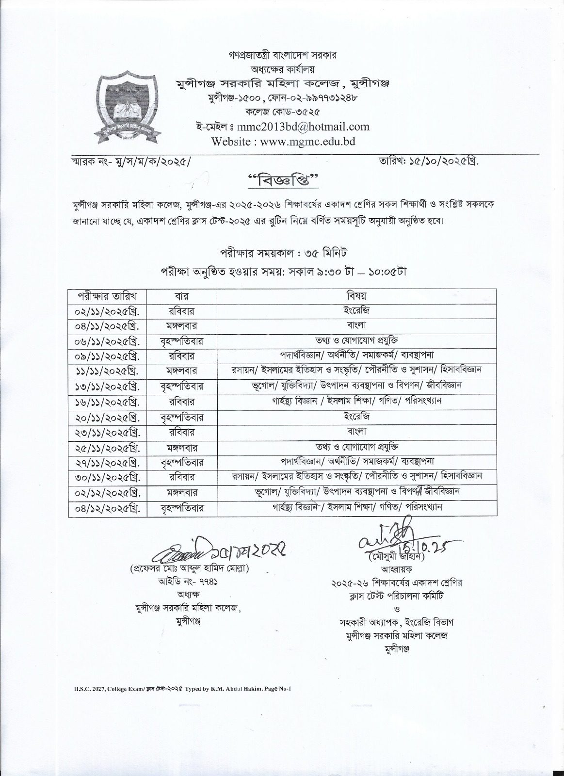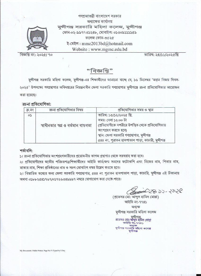 মুন্সীগঞ্জ সরকারি মহিলা কলেজে স্বাগতম